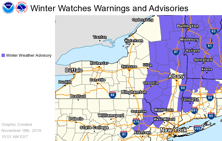 NWS Albany - Freezing Drizzle Today, Wintry Mix Tonight into Tuesday Morning - Issued Monday November 18, 2019 1030 AM