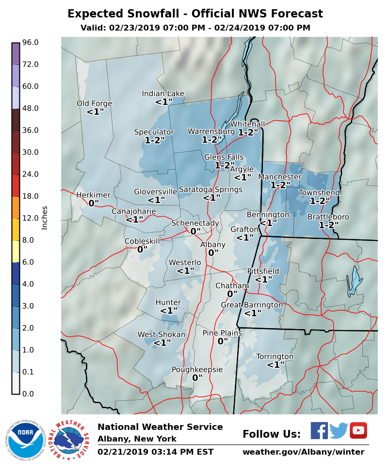 NWS Albany - Wintry Mix Possible Saturday night, Strong Winds Likely Sunday night into Monday - Thursday, February 21st, 2019 - 430 PM