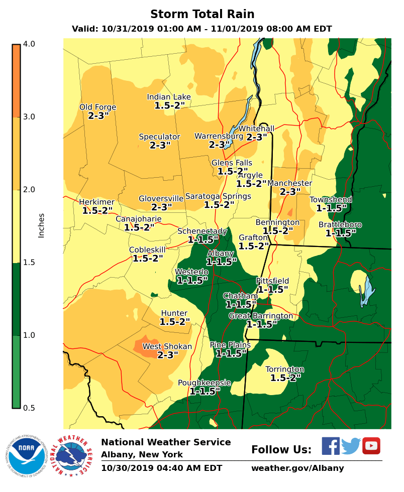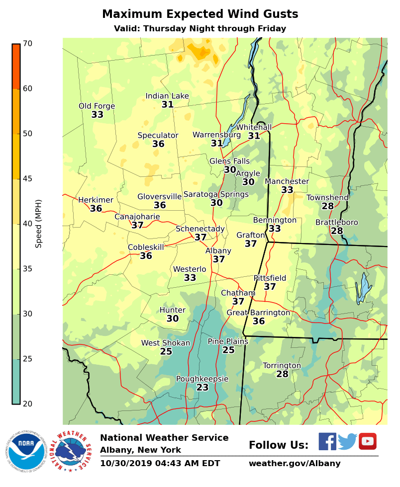 NWS Albany - Heavy Rainfall, Flood Potential & Gusty Winds for Thursday into Friday - Wednesday, October 30, 2019 500 AM
