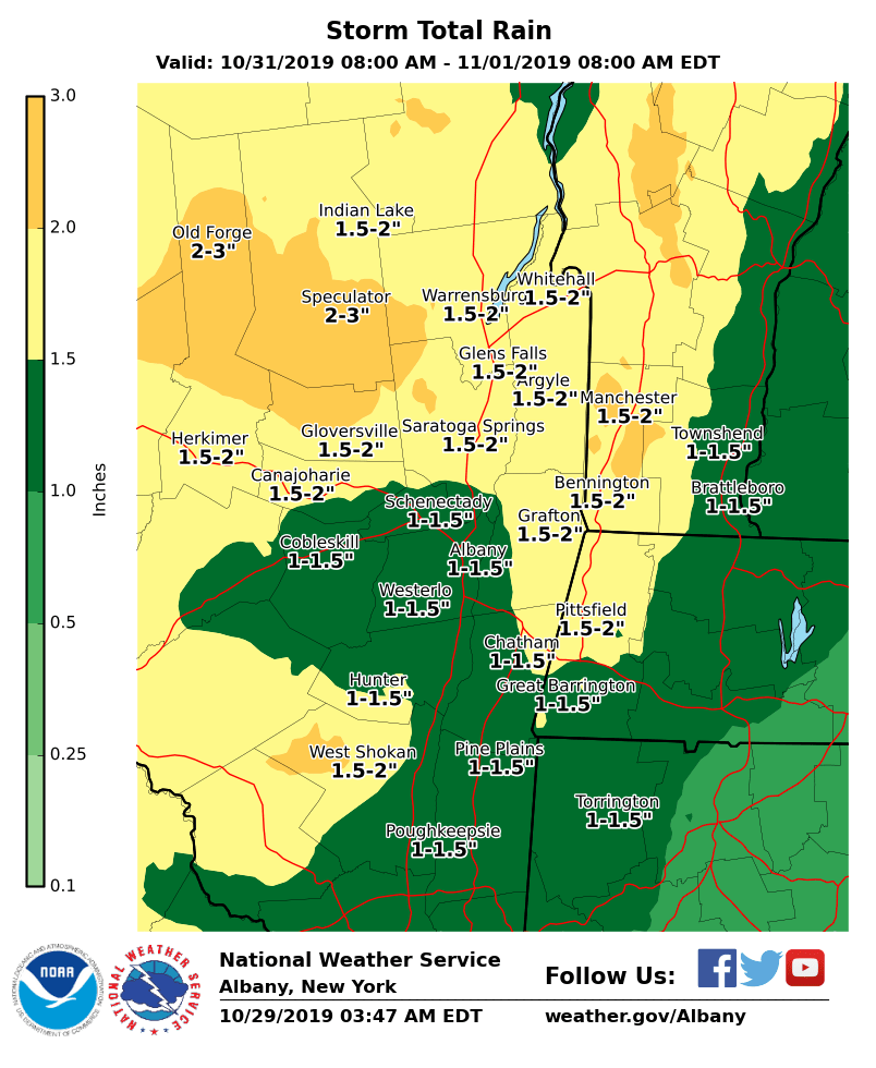 NWS Albany - Heavy Rain and Flood Potential Thursday into Thursday Night - Issued 410 AM Tuesday, October 29th, 2019