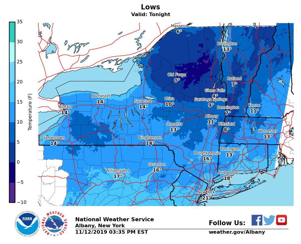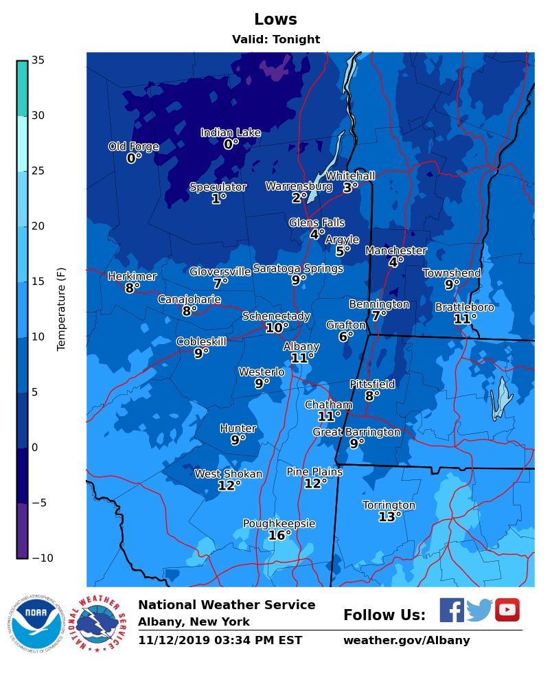 NWS Albany - Record Cold Weather & Snow Squalls Tonight - issued Tuesday, November 12, 2019 345 PM