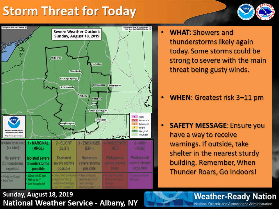 NWS Albany - Marginal Risk For Severe Thunderstorms Today - Sunday, August 18, 2019 445 AM
