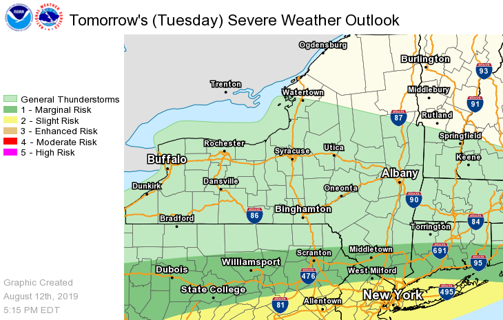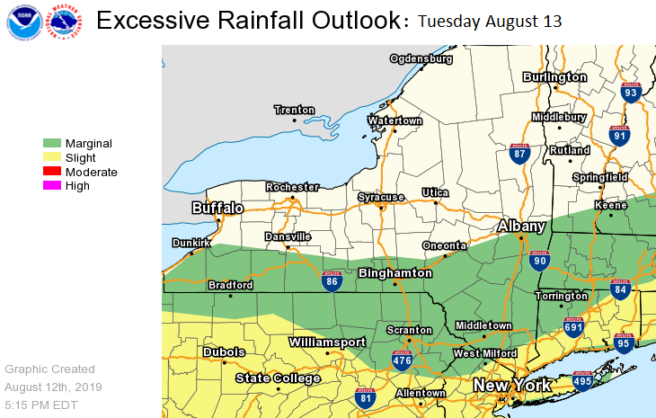 NWS Albany - Thunderstorms with very heavy rain with isolated flooding possible Tuesday - Sent at 547 PM EDT Monday, August 12, 2019