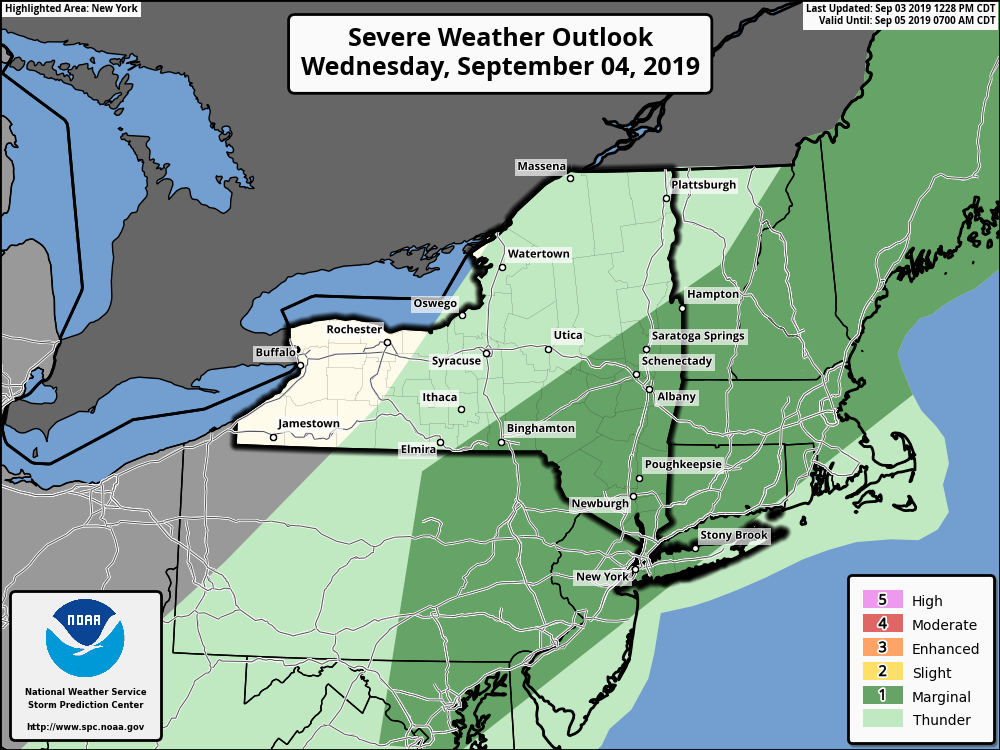 Severe Thunderstorms Potential Wednesday Sept 4, 2019 - Update 4:30PM Tuesday Sept 3, 2019