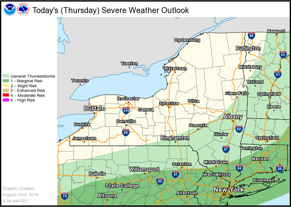 NWS Albany - Limited Severe Weather Threat Today Shifted South of the Area - Issued Thursday, August 22, 2019 410 AM