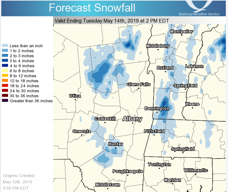 **** The information in this email pertains to the following areas only:**** *- In Massachusetts: Berkshire County* *- In Vermont: Bennington & Windham Counties* *- In New York: Albany, Columbia, Dutchess, Fulton, Hamilton, Herkimer, Montgomery, Greene, Rensselaer, Saratoga, Schenectady, Schoharie, Ulster, Warren and Washington Counties* Dear Emergency Managers and other partners, Periods of rain Monday will likely mix with or change to wet snow over higher elevations in the Catskills, Helderbergs, Taconics, Berkshires, Green and Adirondack mountains Monday night and Tuesday morning. An inch or two of snow may accumulate above 1000 feet mainly on grassy surfaces or elevated surfaces such as tree limbs by mid-morning Tuesday. As much as 4 inches of snow could accumulate over the highest elevations above 2000 feet. If you have any questions, please feel free to contact us via: 1. Email: alb.stormreport@noaa.gov 2. NWSChat at https://nwschat.weather.gov/live/ 3. Social Media: Facebook <https://www.facebook.com/NWSAlbany> and Twitter <https://twitter.com/NWSAlbany> 4. Telephone: (518) 435-9575 <518-435-9575> Sincerely, NWS Albany www.weather.gov/albany