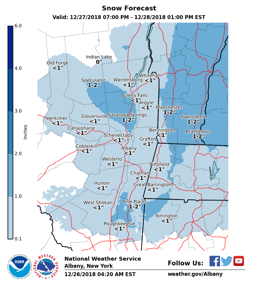 NWS Albany - Wintry Mix Expected Thursday Night into Friday Morning - Wednesday, December 26th, 2018 - 430 AM