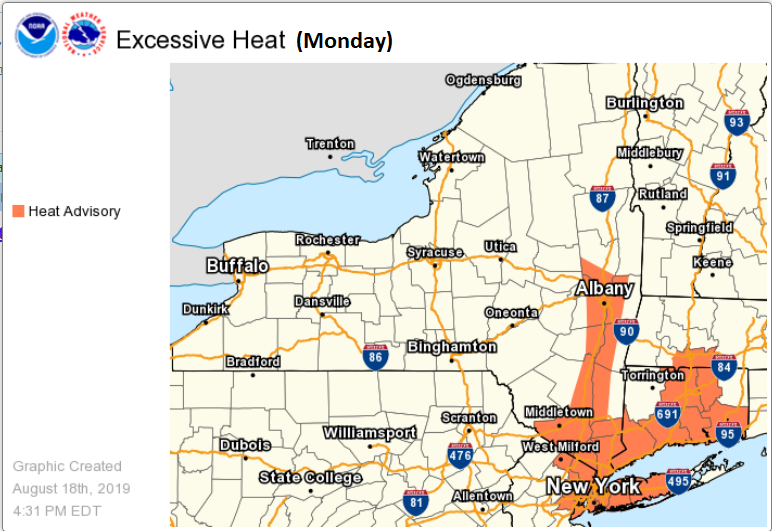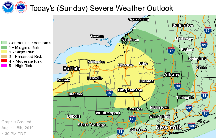 NWS Albany - Threat For Severe Thunderstorms Today and Heat Advisory on Monday - Issued Sunday, August 18, 2019 555 PM