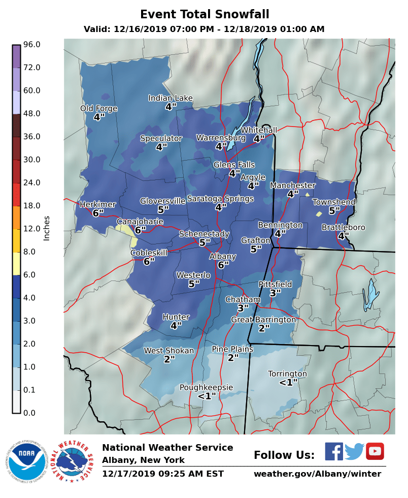 NWS Albany - Updated snow and ice forecasts today - Tuesday, December 17, 2019 1115 AM