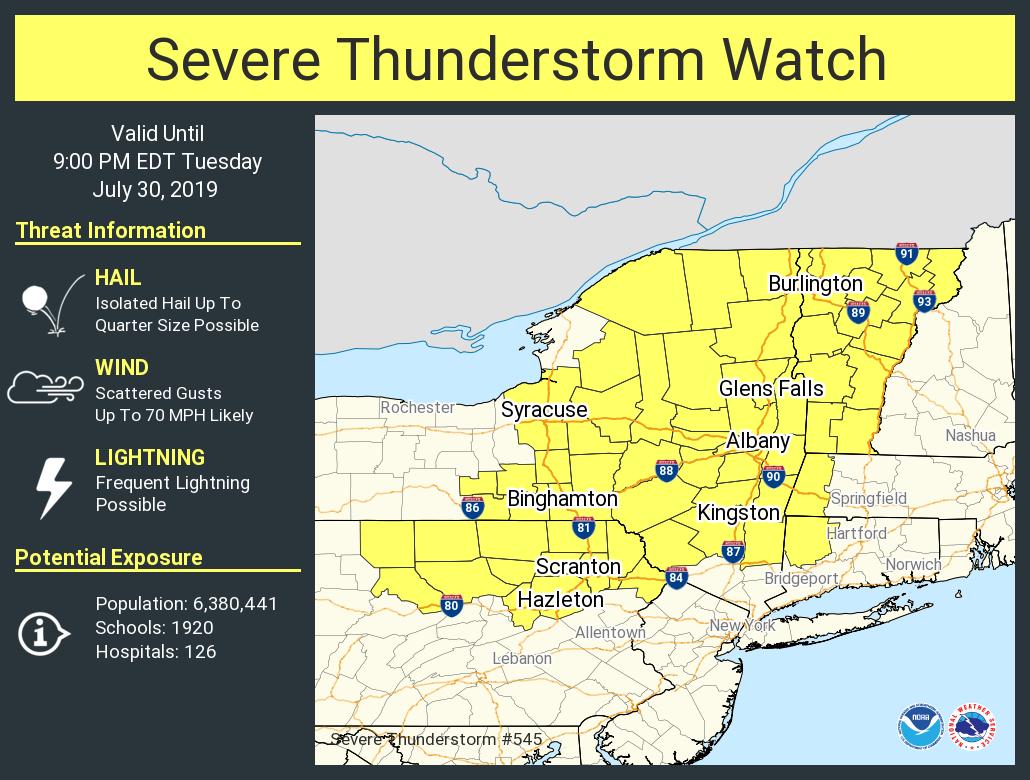 NWS Albany - Severe Thunderstorm Watch in Effect for Entire Area Until 9 PM - Tuesday, July 30, 2019 2 PM