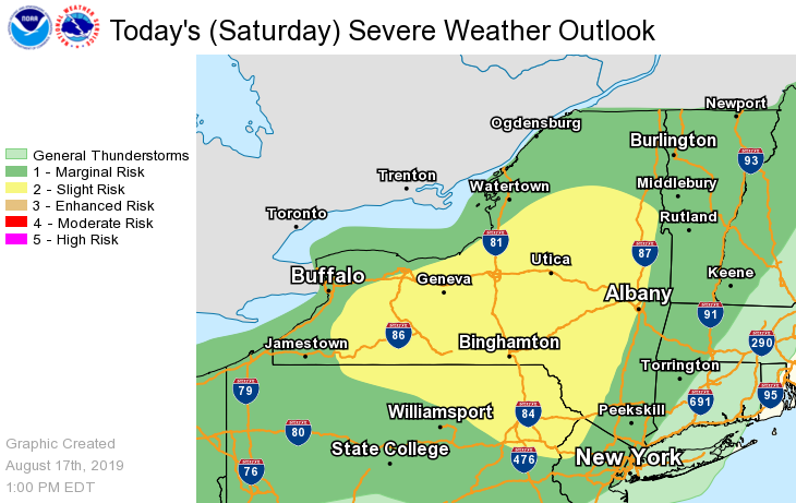 NWS Albany - Slight Risk For Severe Thunderstorms Today - Saturday, August 17, 2019 103 PM