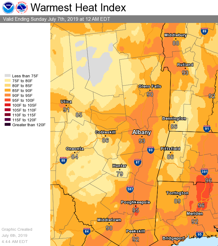NWS Albany - High Heat Index & Heavy Downpours Possible Today - Saturday, July 6, 2019 450 AM
