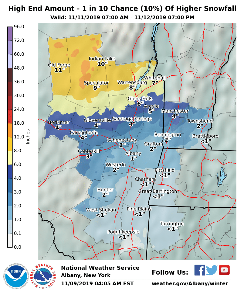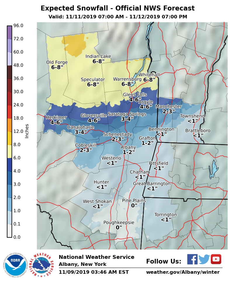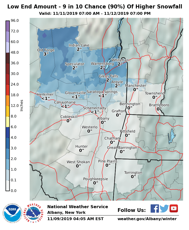 NWS Albany - A mix of precipitation expected Monday into Tuesday morning - Saturday, November 9, 2019 500 AM