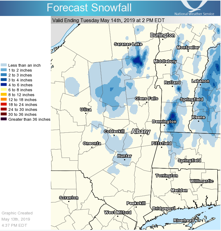 **** The information in this email pertains to the following areas only:**** *- In Connecticut: Litchfield County* *- In Massachusetts: Berkshire County* *- In Vermont: Bennington & Windham Counties* *- In New York: Albany, Columbia, Dutchess, Fulton, Hamilton, Herkimer, Montgomery, Greene, Rensselaer, Saratoga, Schenectady, Schoharie, Ulster, Warren and Washington Counties* Dear Emergency Managers and other partners, Rain will mix with or change to snow over higher elevations tonight. Snow accumulations will be mainly confined to areas above 1000 feet above sea level, with no snow accumulations expected at lower elevations including the Hudson and Mohawk Valleys. However, snowfall accumulations of around an inch will be possible by mid-morning tomorrow above 1000 feet in the Catskills, Helderbergs, Taconics, Berkshires, Green Mountains and Adirondacks, with as much as 4 inches above 2000 feet. Most of the accumulations will be on grassy or elevated surfaces, however some roadways will become slick, especially above 2000 feet. Rainfall totals with this storm will average 0.5 to 1.0 inch across the area, with a little more possible in the Catskills. This is not enough to cause any significant flooding. Attached are forecasts for snowfall and rainfall across the area through midday Tuesday. If you have any questions, please feel free to contact us via: 1. Email: alb.stormreport@noaa.gov 2. NWSChat at https://nwschat.weather.gov/live/ 3. Social Media: Facebook <https://www.facebook.com/NWSAlbany> and Twitter <https://twitter.com/NWSAlbany> 4. Telephone: (518) 435-9575 <518-435-9575> Sincerely, NWS Albany www.weather.gov/albany
