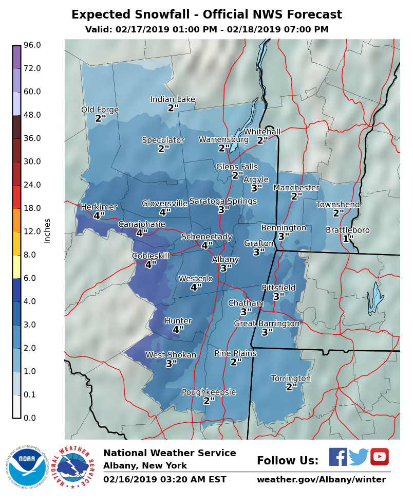 NWS Albany - Light Snow Expected Sunday Night into Monday - Saturday, February 16, 2019 - 530 AM