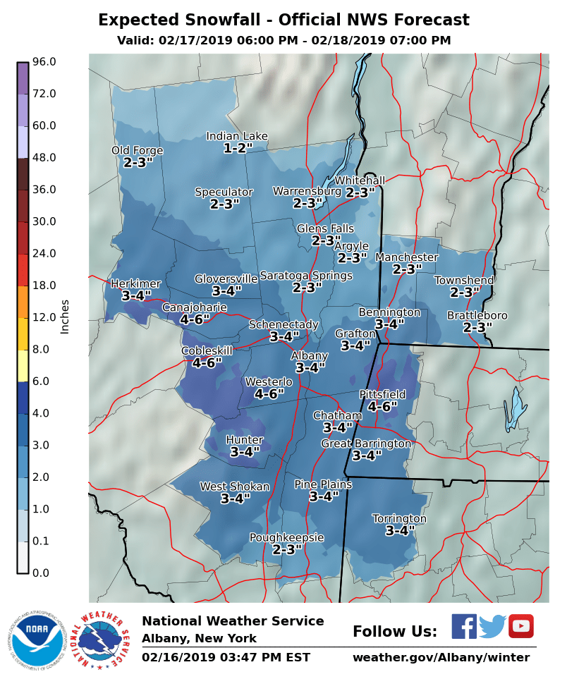 NWS Albany - Light to Moderate Snow Sunday Night into Monday - Saturday, February 16, 2019 - 455 PM