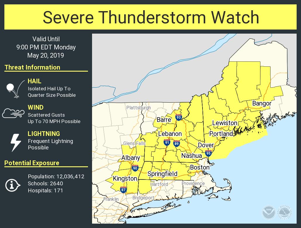 NWS Albany - Severe Thunderstorm Watch in Effect Until 9 PM - Monday, May 20, 2019 - 215 PM