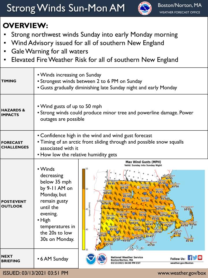 [2021-03-13 PM] NWS Boston EM Briefing: Gusty Winds Sunday into Monday Morning
