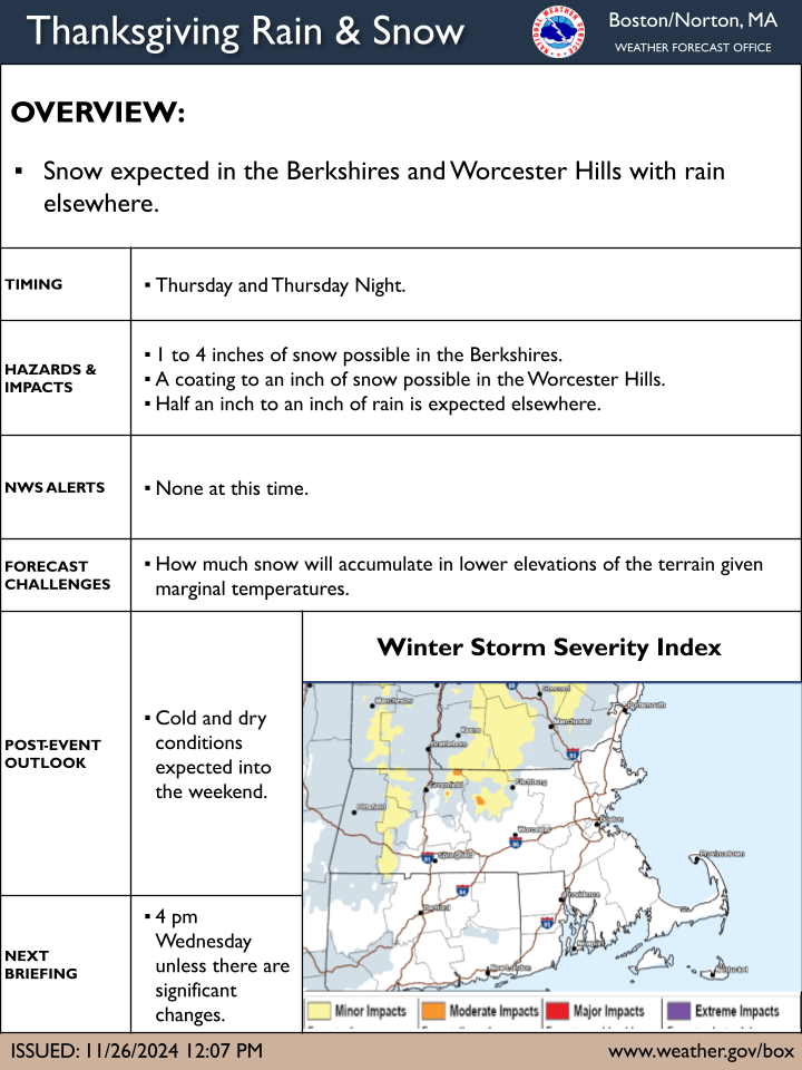 [11.26.2024 PM] NWS Boston EM Briefing - Thanksgiving Rain & Snow