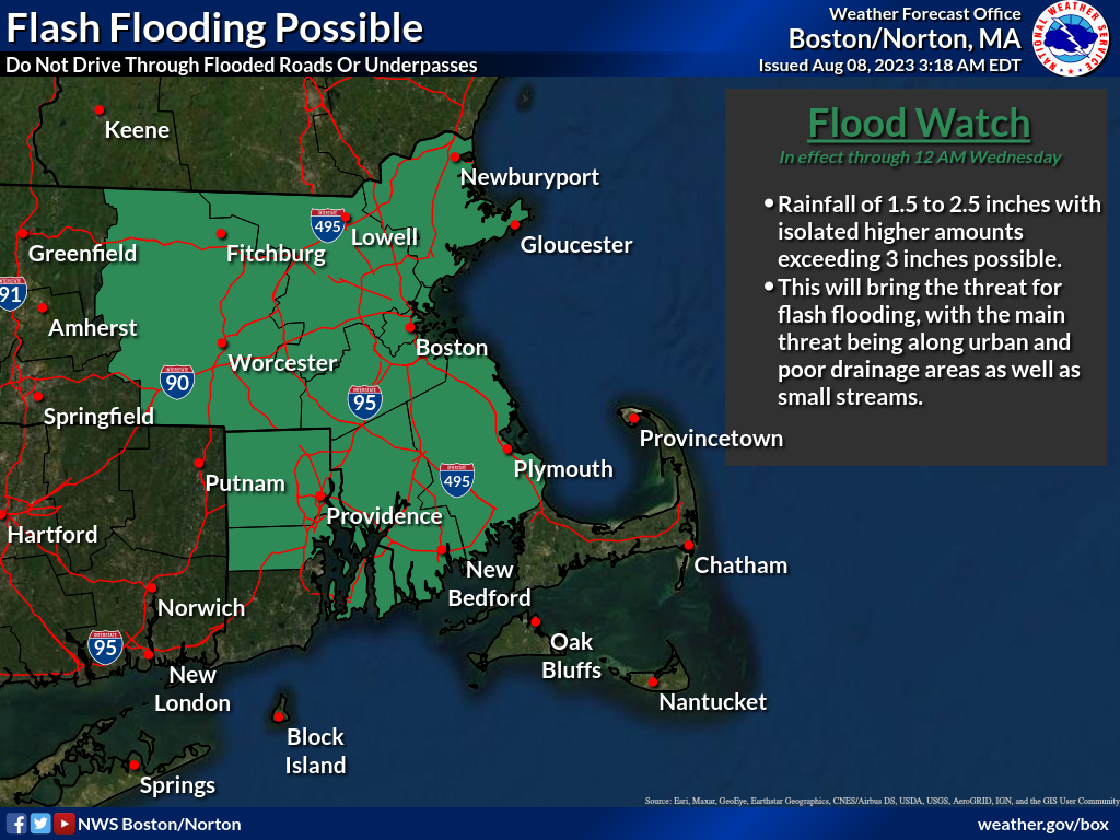 [08.10.2023 AM] NWS Boston EM Briefing - Heavy Rain & Strong Storms Possible Tonight into Fri AM