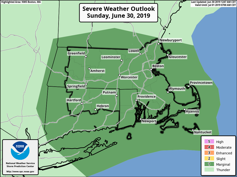 Good morning, There are no changes since yesterday's briefing. The threat for strong to severe thunderstorms continues today. *WHAT/WHEN:* - Scattered strong to perhaps severe thunderstorms expected from mid to late morning into the afternoon. *WHERE:* - All of southern New England is at risk, but the greatest risk is across central and eastern MA as well as Rhode Island. *POTENTIAL IMPACTS:* - Hail is the main threat. Some large hail exceeding the size of a quarter is possible. - Locally strong to perhaps damaging wind gusts are a secondary concern which may bring down tree limbs/branches and small trees. - Localized heavy rainfall producing 1-2 inches in a short time will bring the risk of localized street flooding. - Dangerous cloud to ground lightning will pose a risk to those with outdoor activities, including mariners and beach goers. If you have any questions or concerns, please reach out to us any time. Kevin Cadima NWS Boston/Norton If you have any questions or would like more information, don't hesitate to contact us via this email address, on NWSChat <https://nwschat.weather.gov/>, or at the following: National Weather Service Boston/Norton, MA 46 Commerce Way Norton, MA 02766 508.622.3280 Website <http://www.weather.gov/boston> | Facebook <http://www.facebook.com/NWSBoston> | Twitter <http://www.twitter.com/NWSBoston>