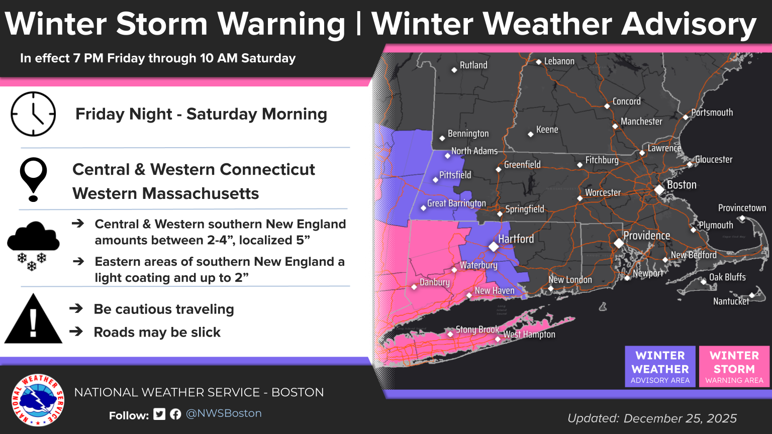 [2025.12.25 PM] NWS Boston EM Briefing: Accumulating Snow Friday Night–Saturday