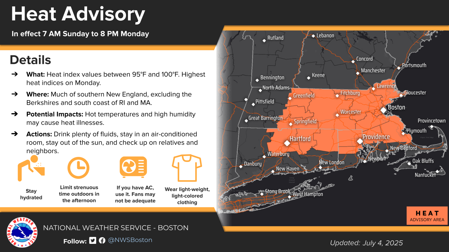 [2025.07.04 PM] NWS Boston Briefing: High Heat Returns Sunday-Monday