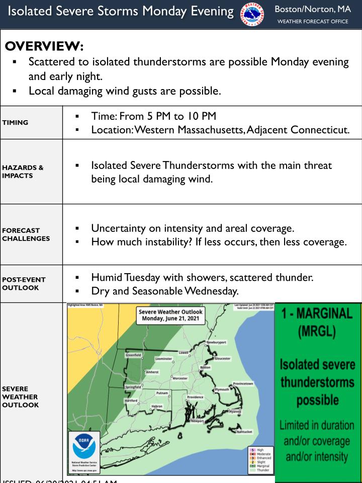 [06.20.21 AM] NWS Boston EM Briefing for Severe Weather Potential Monday evening