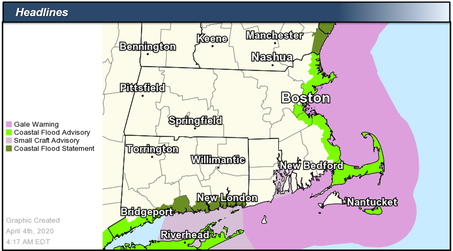[2020-04-04 AM] NWS Boston EM Briefing: Minor Coastal Flooding for east coastal MA