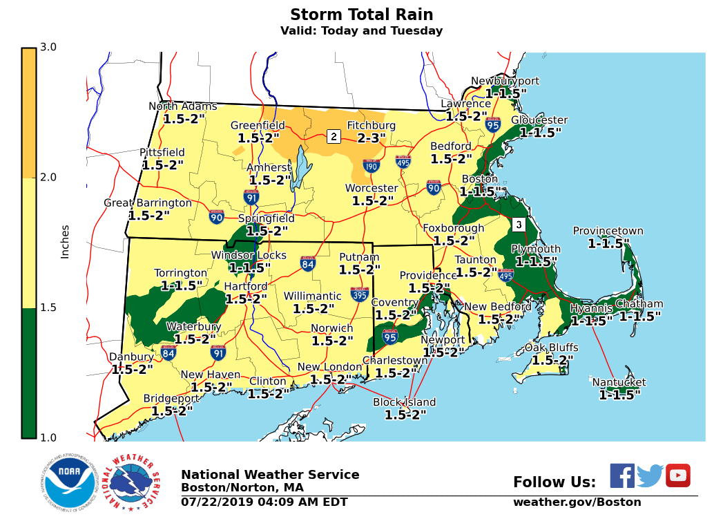[2019.07.22 AM] Showers and Thunderstorms for Srn New England This Afternoon and Tuesday