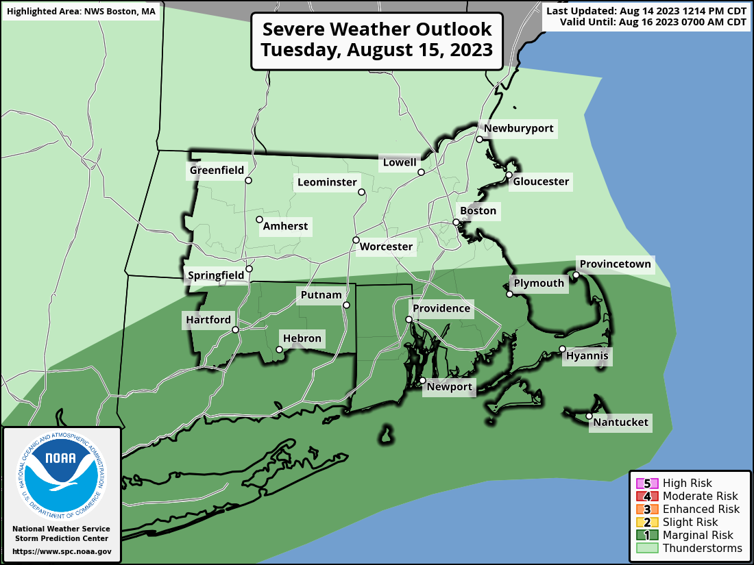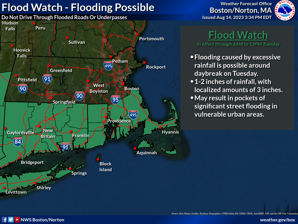 [08.14.2023 PM] NWS Boston EM Briefing: Heavy Rain, Localized Strong Storms Late Tonight to Tuesday AM