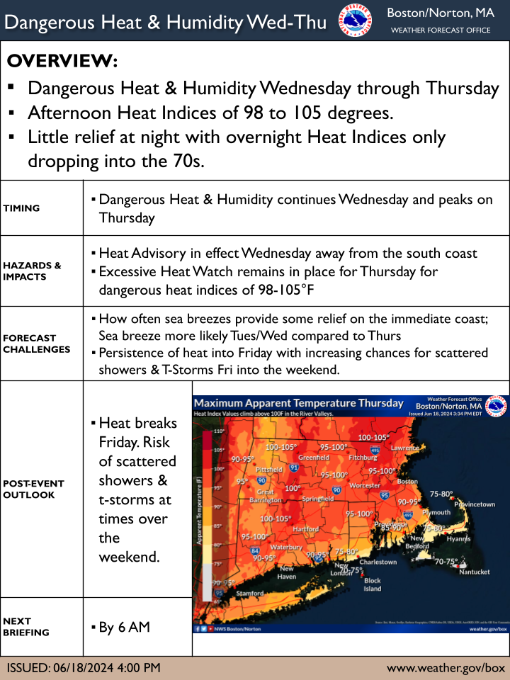 [2024.06.18 PM] NWS Boston EM Briefing: Dangerous Heat & Humidity Tuesday through Friday