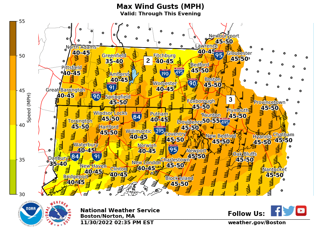 [11-30-2022 PM] NWS Boston EM Briefing: Strong to Damaging Winds This Afternoon and Thursday
