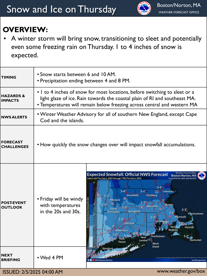 [2025.02.05 AM] NWS Boston EM Briefing - Snow and Ice Thursday