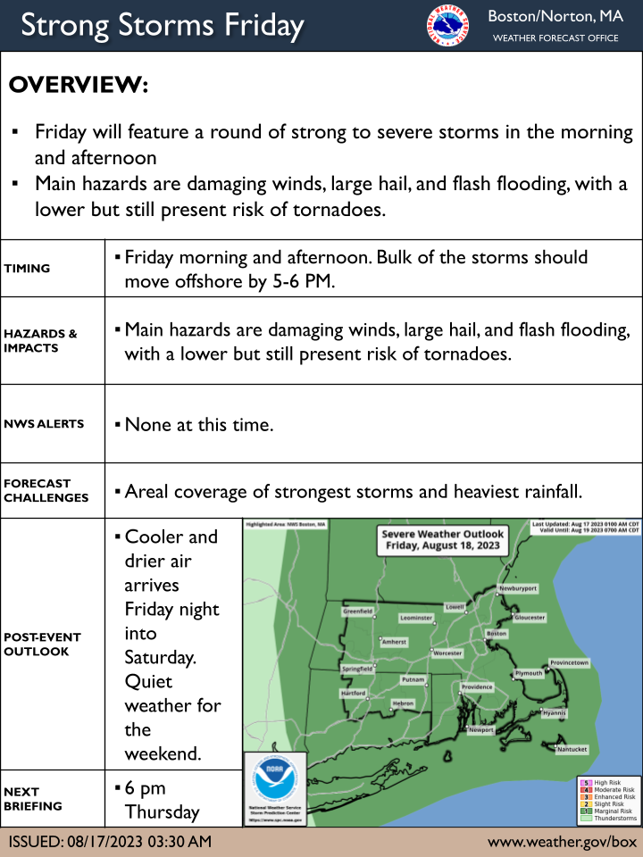 [08.17.2023 AM] NWS Boston EM Briefing: Strong Storms on Friday