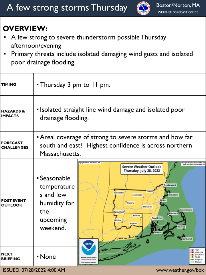 [2022.07.28 AM] NWS Boston Briefing: Isolated Strong to Severe Storms