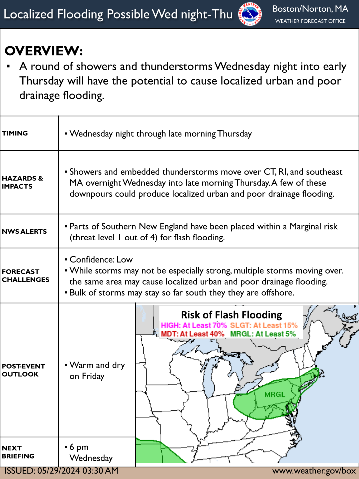 [2024.05.29 AM] NWS Boston EM Briefing -- Low Risk of Flooding Overnight into Thursday