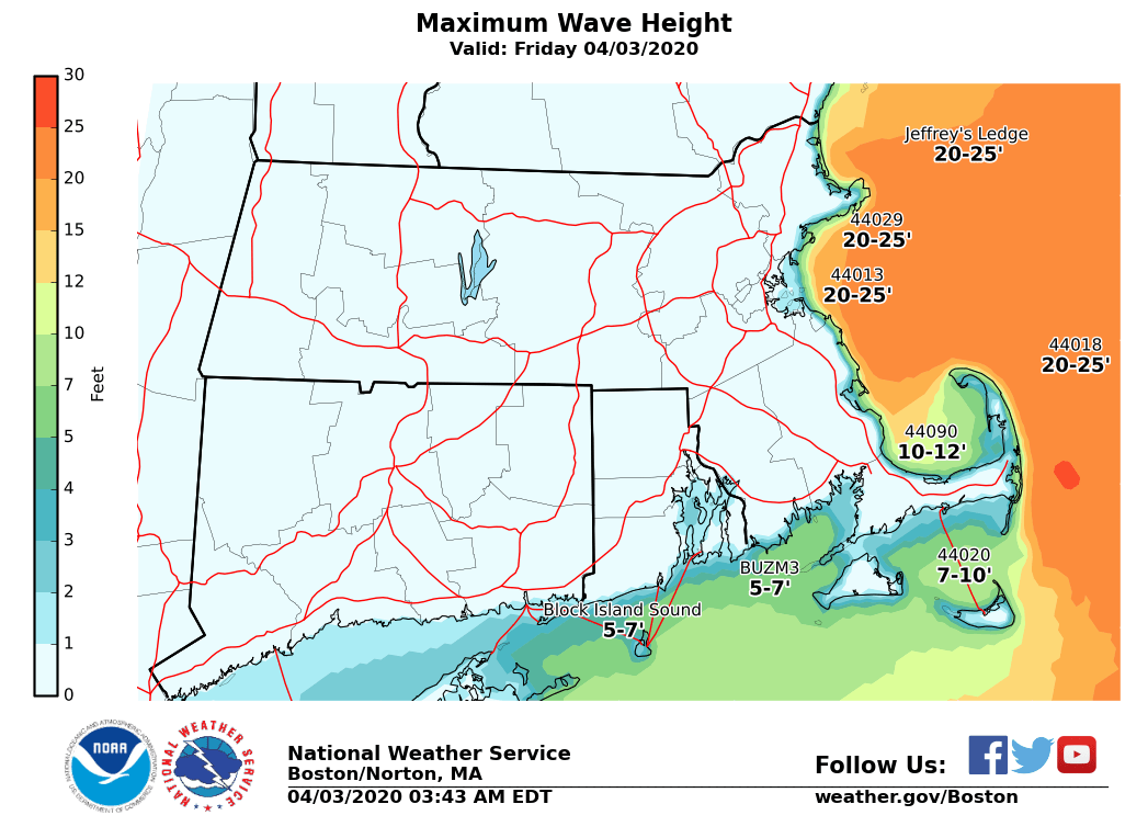 Good morning, Here is the latest update on strong/damaging winds and coastal flooding today across eastern MA. *Changes from previous forecast* ...* High Wind Warning expanded to include Cape Ann (Rockport, Manchester & Gloucester) & Wind Advisory expanded into Boston & into western Plymouth county* *Headlines:* - High Wind Warning*: *In effect from early Friday morning through Friday evening for Cape Cod, Nantucket, Martha's Vineyard and Cape Ann. - *Wind Advisory*: In effect from early Friday morning through Friday evening for Plymouth county to Boston - *Coastal Flood Warning*: In effect for Friday morning's high tide for all of the east coast of MA, including Nantucket and Martha's Vineyard - Storm Warning: In effect early Friday morning thru Friday evening, for the coastal waters east of Ipswich Bay and Stellwagen Bank National Marine Sanctuary and the offshore waters adjacent Cape Cod and the Islands (excluding Buzzards Bay and Vineyard Sound). - *Gale Warning*: In effect early Friday morning thru Friday evening, for the remaining waters. *Details:* *Coastal Flooding: * *Friday Morning: Widespread Minor with pockets of moderate coastal flooding* - *Locations*: entire eastern MA coastline from the NH/MA border to Nantucket. This includes the coastline of Boston, Cape Cod and the Islands. - *Timing*: From 6 AM to 10 AM Friday morning. - *Impacts/Inundation*: For Nantucket: One to two feet of inundation above ground level possible. For east coastal Mass including Cape Cod and Martha's Vineyard, up to one foot of inundation above ground level is possible. - *Confidence and Uncertainty: *High confidence on widespread minor coastal flooding but some uncertainty on areal extent of moderate flooding. The greatest confidence for moderate coastal flooding is at Nantucket. If higher winds and waves occur then more widespread moderate coastal flooding will occur. Conversely if wind and waves trend lower than moderate coastal flooding will not be as widespread. - *Friday Evening & Saturday Morning High Tides:* minor coastal flooding is possible during these high tide cycles along the entire eastern MA coastline. Thus a Coastal Flood Advisory may be needed for these two tide cycles. *COASTAL FLOOD DEFINITIONS ...* Minor Coastal Flooding - Flooding of the most vulnerable shore roads and/or basements due to height of storm tide or wave splash over. - Majority of roads remain passable with only isolated closures due to nuisance flooding or rip rap. - Isolated inundation up to a foot is possible. - There is no significant threat to life and any impact on property is minimal. - This type of event is covered by a Coastal Flood Advisory. Moderate Coastal Flooding - Widespread flooding of vulnerable shore roads and/or basements due to height of storm tide and/or wave action. - Numerous road closures are needed. - Lives may be at risk for people who put themselves in harm’s way. - Isolated damage of very vulnerable structures such as docks or house decks/porches near the high tide line may be observed. - Pockets of inundation up to 3 feet above ground are likely. - This type of event is covered by a Coastal Flood Warning. The link below provides Coastal Flood Threat and Inundation Mapping ... https://www.weather.gov/box/coastal *Strong to Damaging Winds: * - *Locations: *Cape Cod, the Islands and east coastal Mass. - *Timing: *Strongest north to northeast winds occur today between roughly 8 am and 4 pm. - *Winds*: gusts up to 60 mph for Cape Cod, the islands and Cape Ann, and up to 50 mph for east coastal Mass. - *Impacts: *Possible downed trees and power lines. - *Confidence and Uncertainty*: highest confidence for damaging winds is across Cape Cod, the Islands and Cape Ann with wind gusts at or exceeding 60 mph is most likely. A second area of concern is coastal Plymouth county where winds may be just as strong. Frank Nocera If you have any questions or would like more information, don't hesitate to contact us via this email address, on NWSChat <https://nwschat.weather.gov/>, or at the following: National Weather Service Boston/Norton, MA 46 Commerce Way Norton, MA 02766 508.622.3280 Website <http://www.weather.gov/boston> | Facebook <http://www.facebook.com/NWSBoston> | Twitter <http://www.twitter.com/NWSBoston>
