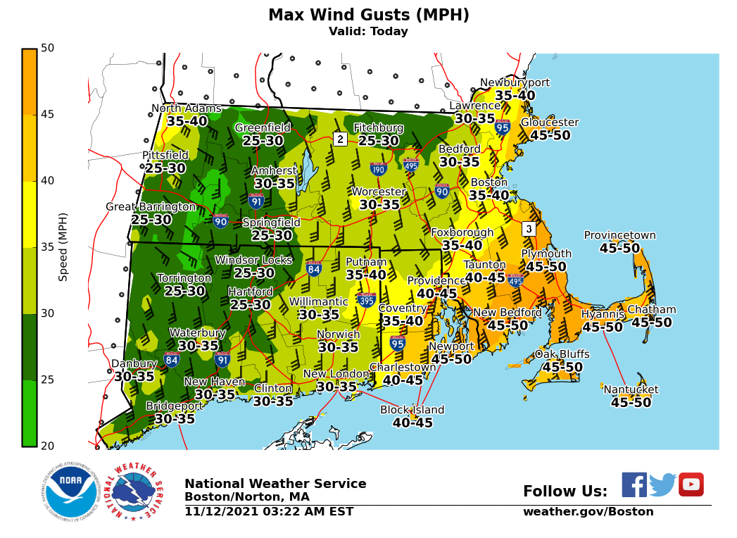 Good morning everyone, Attached is the latest briefing about the severe thunderstorm potential across southern New England this afternoon. Please see the attached briefing for more details. We have also attached the maximum wind gusts anticipated today. Thanks, Bill Leatham and Hayden Frank If you have any questions or would like more information, don't hesitate to contact us via this email address, on NWSChat <https://nwschat.weather.gov/>, or at the following: National Weather Service Boston/Norton, MA 46 Commerce Way Norton, MA 02766 508.622.3280 Website <http://www.weather.gov/boston> | Facebook <http://www.facebook.com/NWSBoston> | Twitter <http://www.twitter.com/NWSBoston>
