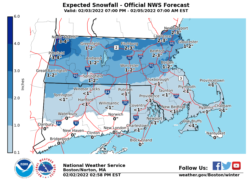 Good afternoon, Attached is an updated briefing regarding the potential for rain changing to a wintry mix of sleet and snow and a possible flash freeze Friday morning. Biggest chance since the last briefing has been a lowering of snow/sleet accumulations across northern MA. There remains a great deal of concern with respect to hazardous travel during the Friday morning commute. A winter storm watch remains in effect. See the attached one page briefing for further details. Thanks, Rob Megnia and Matthew Belk If you have any questions or would like more information, don't hesitate to contact us via this email address, on NWSChat <https://nwschat.weather.gov/>, or at the following: National Weather Service Boston/Norton, MA 46 Commerce Way Norton, MA 02766 508.622.3280 Website <http://www.weather.gov/boston> | Facebook <http://www.facebook.com/NWSBoston> | Twitter <http://www.twitter.com/NWSBoston>