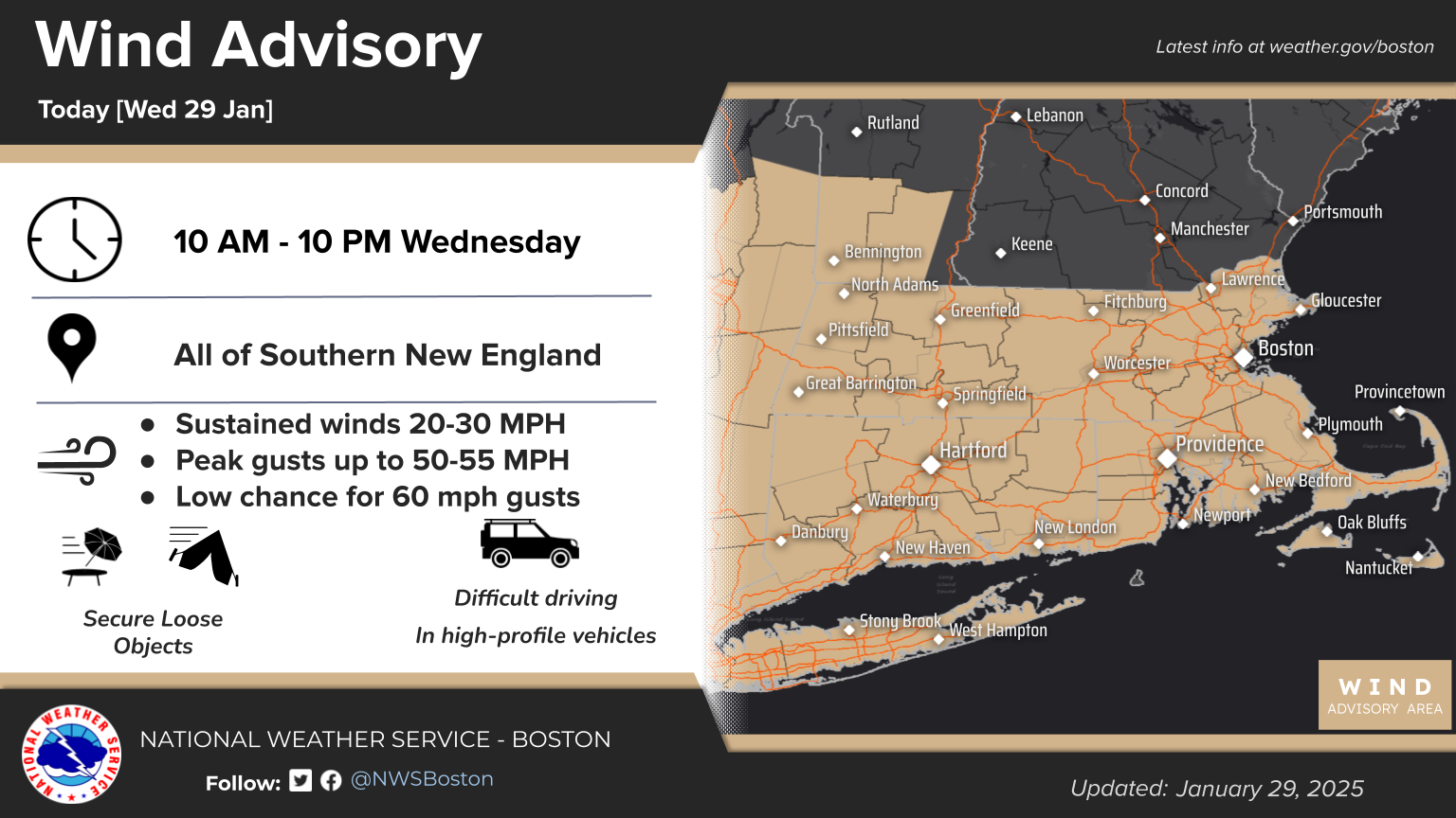 [2025.01.29 AM] NWS Boston EM Briefing - Gusty Winds Today and Bitter Cold Temperatures Tonight