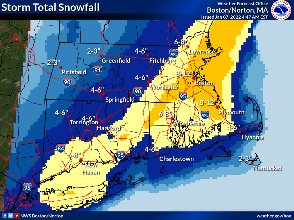 Good morning, Attached is an updated storm total snowfall graphic to account for a narrow band of moderate to heavy snowfall that has developed and extends from roughly New Haven CT northeast to Boston MA. This change is mainly reflected through 7am. Beyond that the snowfall forecast remains the same as before. Notice the increased storm totals over Windham county CT, Providence county RI, and Norfolk, Suffolk, and Essex counties in MA. This will be the last update for this storm barring any major changes. Thank you, Rob Megnia and Matthew Belk If you have any questions or would like more information, don't hesitate to contact us via this email address, on NWSChat <https://nwschat.weather.gov/>, or at the following: National Weather Service Boston/Norton, MA 46 Commerce Way Norton, MA 02766 508.622.3280 Website <http://www.weather.gov/boston> | Facebook <http://www.facebook.com/NWSBoston> | Twitter <http://www.twitter.com/NWSBoston>
