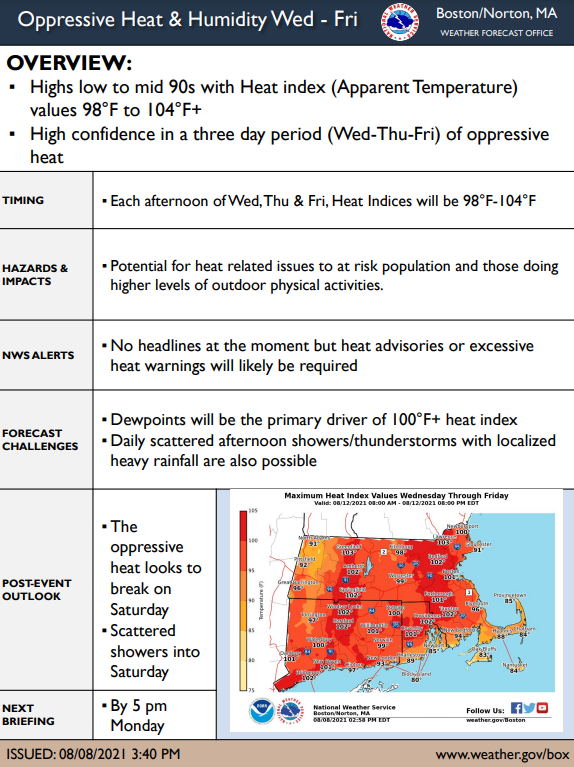 [08.08.2021 PM] NWS Boston EM Briefing For Oppressive Heat Wed thru Fri