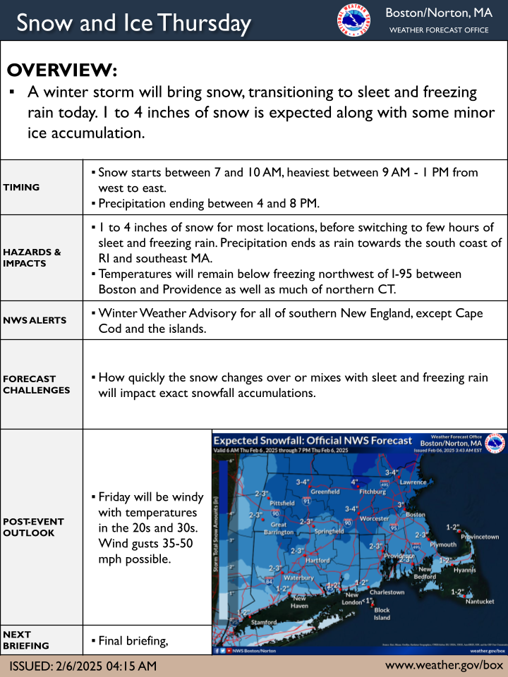 [2025.02.06 AM] NWS Boston EM Briefing - Snow and Ice Today