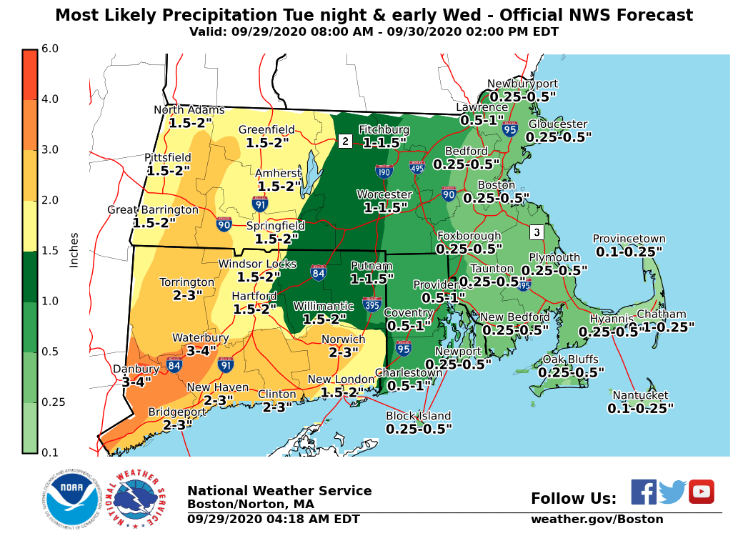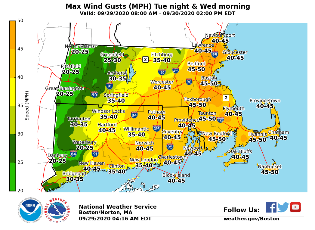 NWS Boston Emergency Management Briefing [09-29] - Isolated Wind Damage Possible Late Tonight & Early Wed