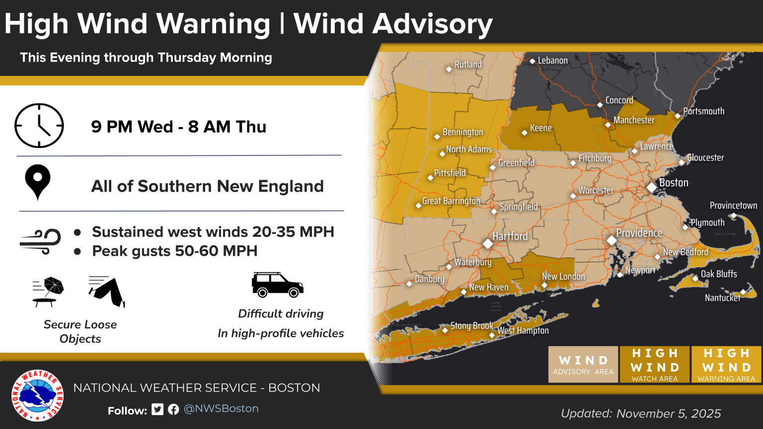 [2025.11.05 PM] NWS Boston/Norton EM Briefing: Damaging Wind Gusts Late Tonight into early Thursday morning
