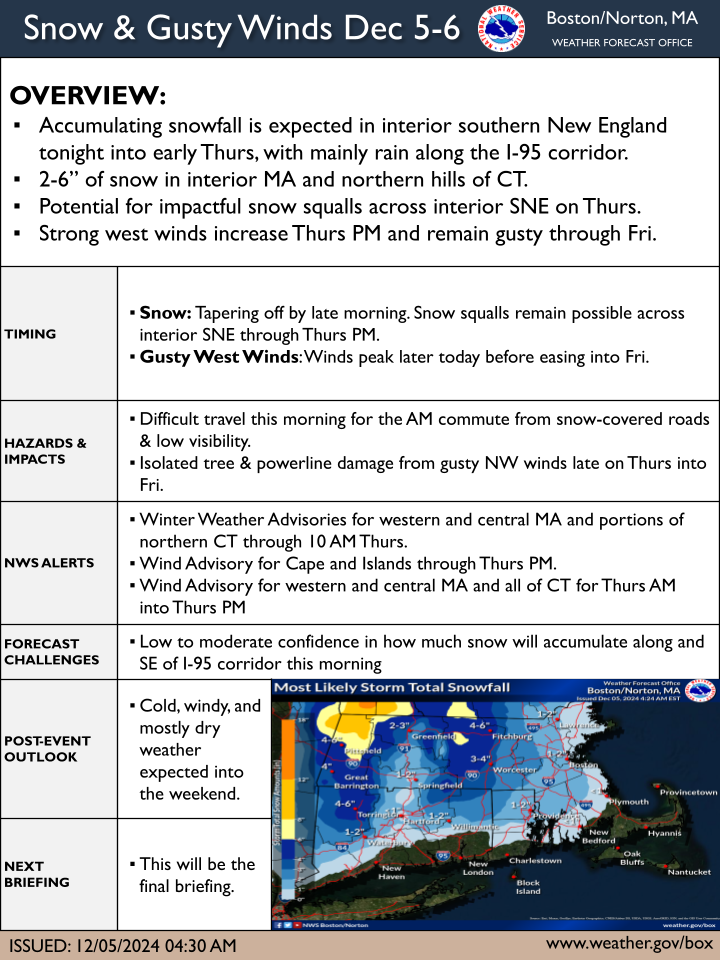 [12.05.2024 AM] NWS Boston Briefing - Interior Snow and Gusty Winds Dec 5-6