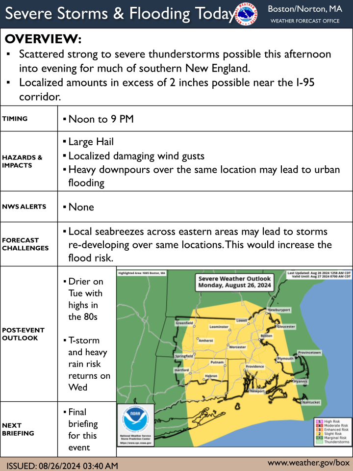 [2024.08.26 AM] NWS Boston EM Briefing: Severe Storms and Flooding Possible Today