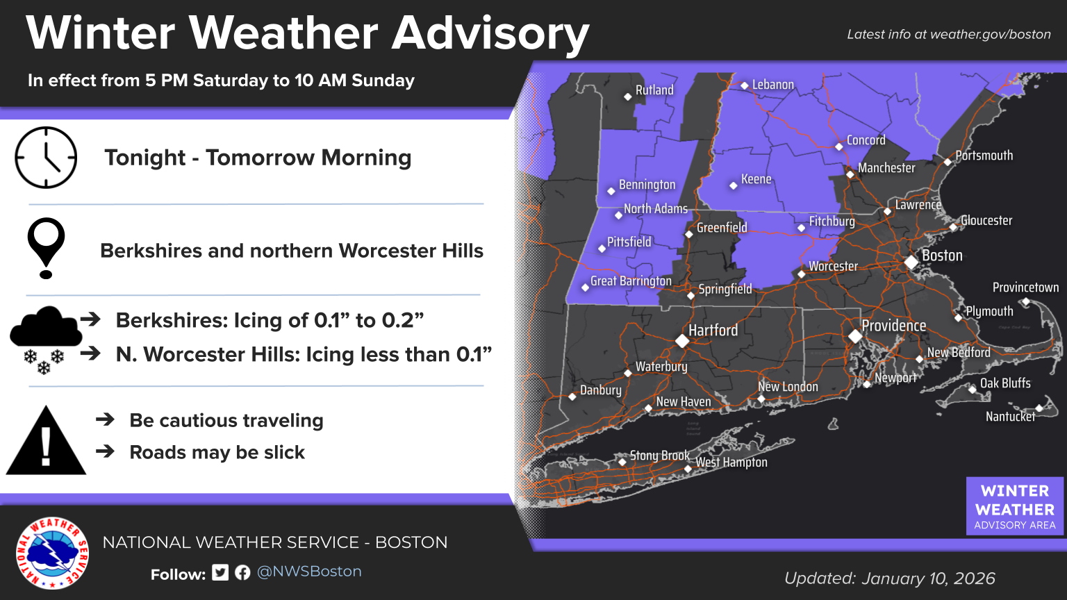 [2026.01.10 AM] NWS Boston EM Briefing: Freezing Rain Saturday afternoon into Sunday Morning