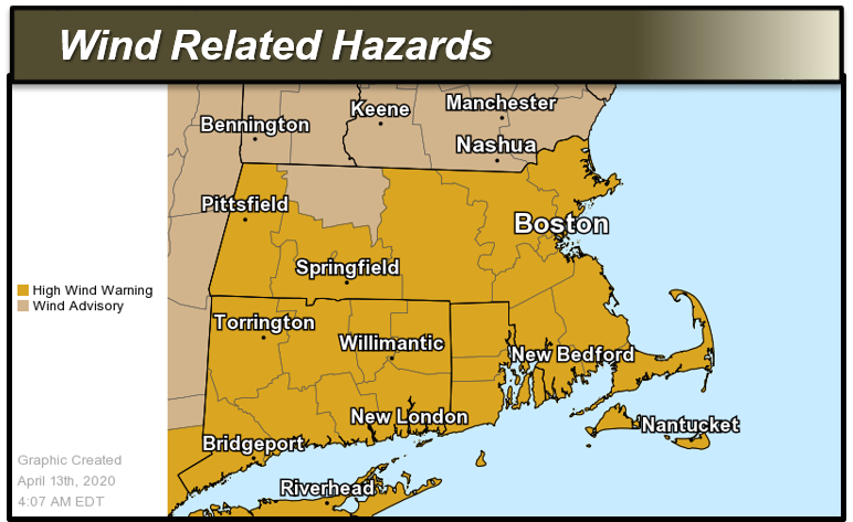 Good morning everyone, Here are our latest thoughts on the potential for damaging wind gusts and heavy downpours today leading to some urban flooding potential. The greatest time of concern is late this morning into early evening. *Changes since the last update:* - Increased emphasis on chance for urban and poor drainage flooding in heavy downpours. Some small streams may approach Action Stage. - Added a Coastal Flood Statement for upper parts of Narragansett Bay including the city of Providence for the low risk of minor coastal flooding during today's mid day high tide *Headlines:* - *High Wind Warning *for all of southern New England except Franklin County Massachusetts from midday until early tonight. - *Wind Advisory* for Franklin County Massachusetts from midday until early tonight. - *Storm Warning *in effect for the ocean waters from this morning into this evening - *Coastal Flood Statement *in effect for upper portions of Narragansett Bay for the mid day high tide *Damaging Winds:* Southerly wind gusts of 55 to 70 mph are possible late this morning through this evening, with sustained winds of 20-40 mph. The highest winds are expected across Rhode Island and southeast Massachusetts including Cape Cod and the Islands, but damaging wind gusts are possible across all of southern New England. *Heavy Rain:* Rainfall amounts of 1 to 2 inches are possible from early Monday morning through Monday early Monday night. Isolated amounts up to 3 inches are possible, especially where where any thunderstorms move through. *Thunderstorms**:* There is a low risk of an isolated thunderstorm this afternoon and early tonight, mainly for western CT and MA. Some of these storms could become severe bringing damaging winds. *Impacts:* - Scattered to widespread power outages are possible due to downed trees, tree limbs and power lines. Difficult travel for high profile vehicles. - Heavy rain may cause brief localized urban and poor drainage flooding. *Uncertainty:* - We are confident in strong to damaging wind gusts, but the area of highest wind gusts is less certain. As of right now, the most likely areas are across northern CT, northern and central RI, and interior southeast MA including the city of Boston. Thank you Bryce Williams and Frank Nocera If you have any questions or would like more information, don't hesitate to contact us via this email address, on NWSChat <https://nwschat.weather.gov/>, or at the following: National Weather Service Boston/Norton, MA 46 Commerce Way Norton, MA 02766 508.622.3280 Website <http://www.weather.gov/boston> | Facebook <http://www.facebook.com/NWSBoston> | Twitter <http://www.twitter.com/NWSBoston>